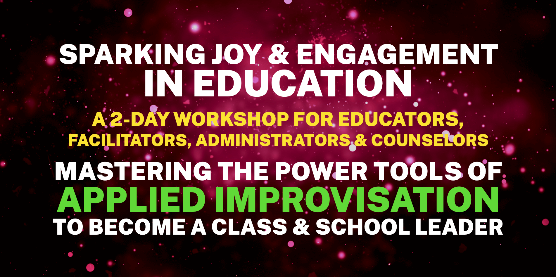 Our two-day virtual workshop is designed specifically for teachers, facilitators, administrators, school counselors, and instructional coordinators. It's built around two core questions: how do you set up your environment for maximum engagement, and how do you use applied improvisation exercises to reach every type of learner?